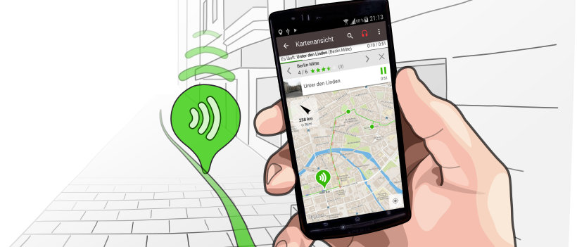 O utilice la aplicación para escuchar el audio paseo in situ: